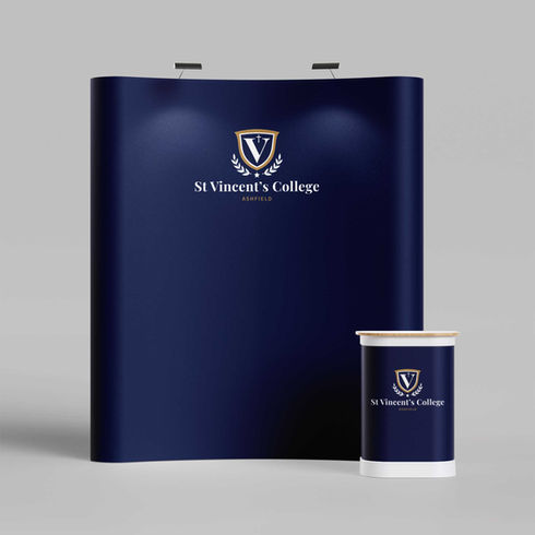 A centred ‘V’ denotes the school patron Saint Vincent de Paul, while a five-point star and an elevated cross—symbols shared by the three schools—allude to Christ being at the centre of faith and education.